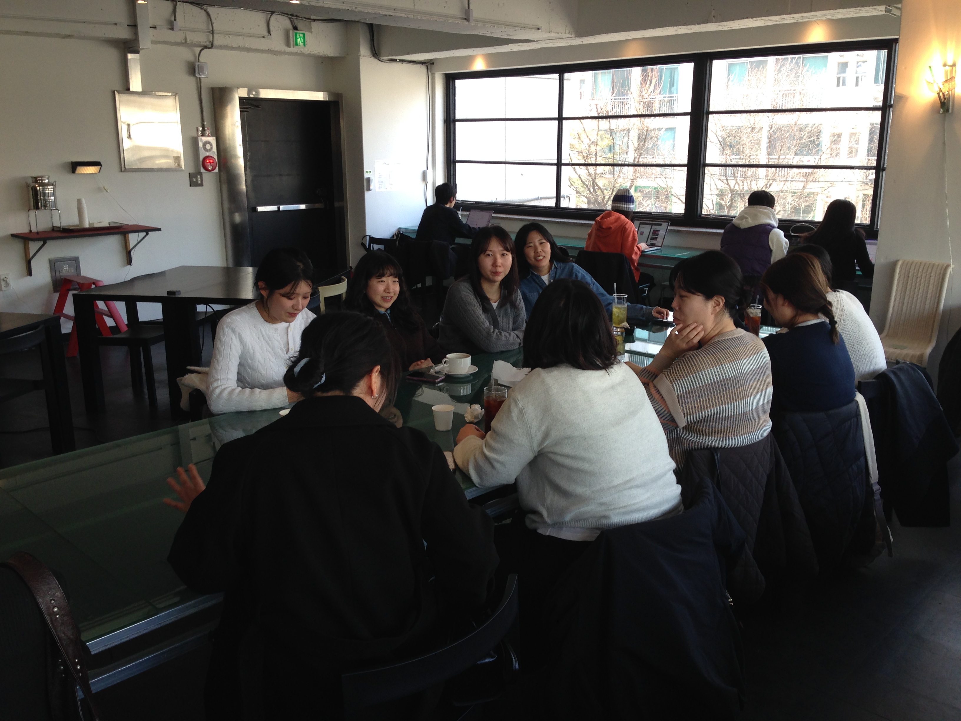 커다란 테이블을 차지하고 근황 수다를 잠시 이어나가보아요.